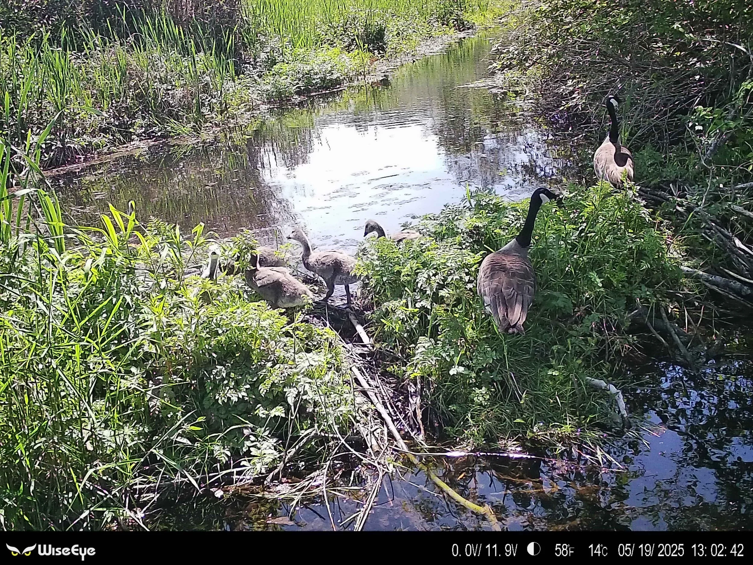 The Canadian goose family spends a lot of time on the dam and they trip the camera over long periods with many photos. It will be nice when the goslings grow up and move out. There is a movie of them with a duck family in the background. The two families seem to be together quite a bit, maybe for mutual protection.